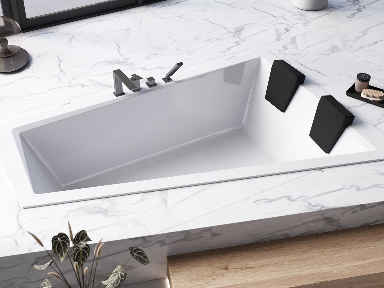 - MILO / MILO BLACK – delikatnie zaokrąglony zagłówek, który idealnie otula kark i zapewnia wyjątkowo komfortowe podparcie podczas kąpieli.